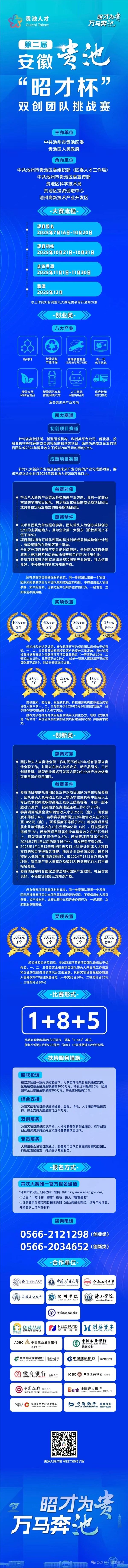 記者還為大家整理了第二屆安徽貴池“昭才杯”雙創(chuàng)團(tuán)隊(duì)挑戰(zhàn)賽的詳細(xì)流程 絕佳機(jī)遇和豐厚獎(jiǎng)金等你來(lái)拿! 詳情請(qǐng)戳下圖了解。