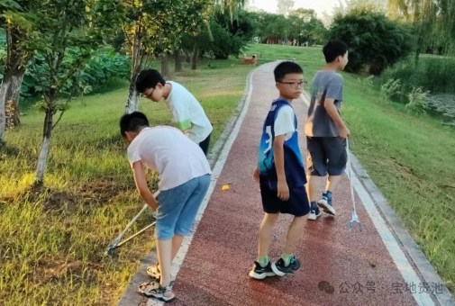 近段時間,在主城區(qū)公園、河道兩岸以及邊角地塊等處,每天傍晚都能看見一大一小兩個身影手持垃圾袋和夾子,彎著腰沿路仔細清理地上的垃圾。