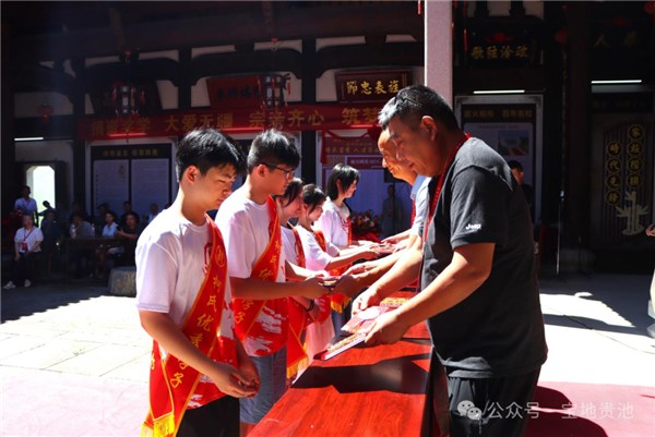 當(dāng)天上午9時(shí)許,活動(dòng)在鐘鼓聲、禮炮聲中正式開始,優(yōu)秀學(xué)子排成兩列整齊立在門前,整衣冠,肅容儀,走紅毯入祠,行報(bào)喜之禮。家風(fēng)文化館門前,古柳亭亭如蓋;永和堂內(nèi),金榜熠熠生輝,親朋好友齊聚一堂,共同分享優(yōu)秀學(xué)子金榜題名的喜悅。 揭榜、頒發(fā)獎(jiǎng)牌和獎(jiǎng)學(xué)金、觀看柯氏家風(fēng)宣傳片等流程依次進(jìn)行,“修德業(yè),崇祀典,正倫理,恤孤嫠”的十二字家訓(xùn)在掌心傳遞間逐漸升溫。