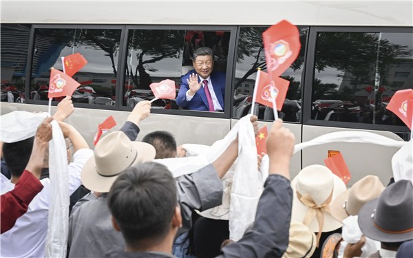 中共中央總書記、國家主席、中央軍委主席習(xí)近平率中央代表團20日中午乘專機抵達(dá)拉薩,出席西藏自治區(qū)成立60周年慶祝活動。習(xí)近平等在機場和拉薩市區(qū)受到西藏各族群眾的熱烈歡迎。中共中央政治局常委、全國政協(xié)主席、中央代表團團長王滬寧,中共中央政治局常委、中央辦公廳主任蔡奇等同機抵達(dá)。(文字記者:張曉松、朱基釵;攝影記者:謝環(huán)馳、燕雁、申宏、殷博古)