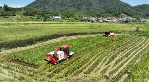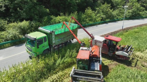 近日,貴池區(qū)再生稻頭季稻陸續(xù)成熟,各地正搶抓晴好天氣開展機(jī)收作業(yè)。8月26日,在唐田鎮(zhèn)八一村池州豐谷家庭農(nóng)場里,一片金黃稻浪隨風(fēng)起伏,兩臺(tái)收割機(jī)正來回穿梭作業(yè),切割、脫粒、卸糧一氣呵成,稻谷直接裝車運(yùn)走,田間地頭盡顯豐收繁忙景象。