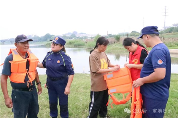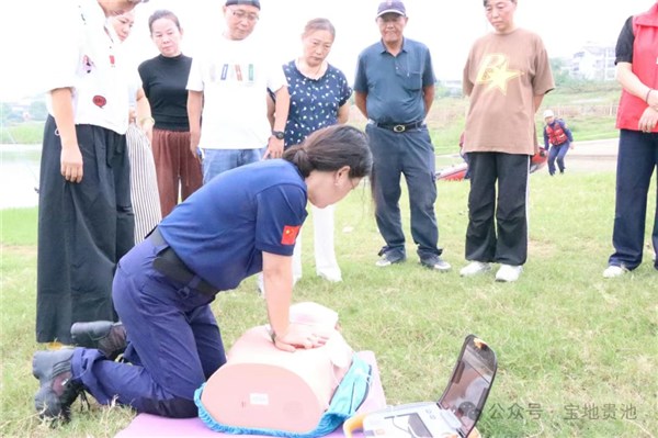 演練結(jié)束后,救援人員還為現(xiàn)場(chǎng)釣魚人員、市民及社區(qū)志愿者開展了“實(shí)戰(zhàn)化”急救培訓(xùn)。醫(yī)療輔助組隊(duì)員現(xiàn)場(chǎng)演示心肺復(fù)蘇操作流程,從判斷意識(shí)、胸外按壓到人工呼吸,每一個(gè)步驟都細(xì)致講解、反復(fù)示范,并主動(dòng)邀請(qǐng)群眾進(jìn)行實(shí)操練習(xí),及時(shí)糾正動(dòng)作不規(guī)范之處,確保大家真正掌握操作要領(lǐng)。培訓(xùn)中,救援人員還聚焦“自身安全防護(hù)”,教學(xué)正確穿戴浮力馬甲的方法,并結(jié)合真實(shí)溺水救援案例,著重強(qiáng)調(diào)“先保己、再救人”的救援原則,引導(dǎo)群眾摒棄盲目施救觀念,樹立科學(xué)救援意識(shí)。