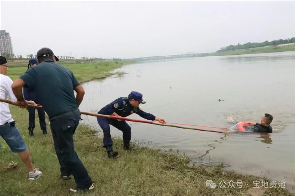 “救命?。∮腥寺渌?!”日前,在白洋河西門大堤水域,一道呼救聲驟然響起,岸邊群眾循聲望去,只見一名“溺水者”在水中掙扎,情況十分危急,周圍人員迅速行動(dòng)開展救援……走近一看,原來是一場(chǎng)旨在筑牢水域安全防線的防溺水應(yīng)急救援演練。