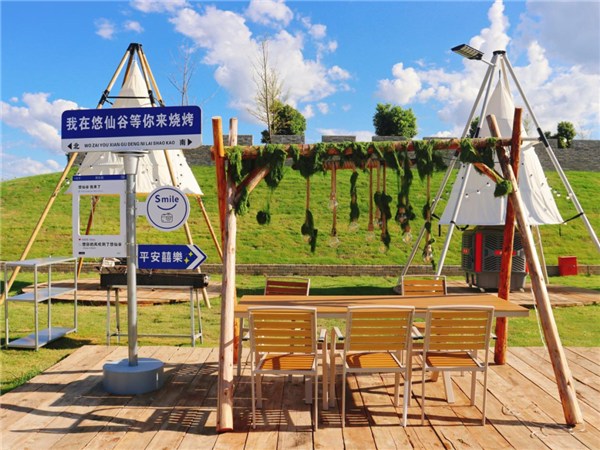 第二站天青山莊,品農(nóng)家特色菜,篝火狂歡后伴蟲鳴舒展身心。