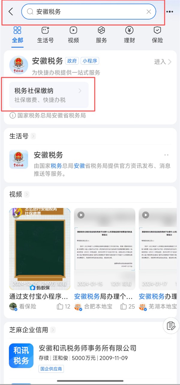 (二)支付寶繳費流程:支付寶APP搜索【安徽稅務(wù)】小程序,選擇【稅務(wù)社保繳納】。進入個人社保辦費平臺頁面,點擊【社保繳費辦理】,繳費辦理對象選擇本人或他人,進行繳費。