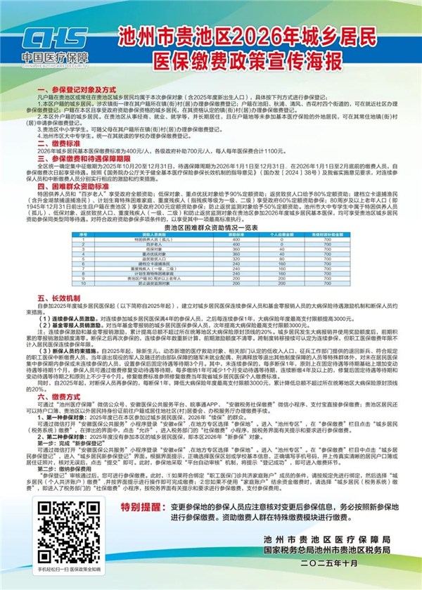 據(jù)介紹,2026年城鄉(xiāng)居民醫(yī)保個人繳費標準為每人每年400元,政府補助標準提高30元到每人每年不低于700元。集中征繳期為2025年10月20日至12月31日。目前,線上線下繳費渠道已全面開通。線上可通過“池州醫(yī)療保障”微信公眾號、安徽醫(yī)保公共服務(wù)平臺、皖事通APP、“安徽稅務(wù)社保繳費”微信小程序、支付寶等平臺“掌上辦”;線下保留村(居)委會集中代收等傳統(tǒng)渠道,方便老年人等群體就近辦理。廣大城鄉(xiāng)居民可向當(dāng)?shù)蒯t(yī)保經(jīng)辦機構(gòu)、村(居)委會咨詢,或登錄官方線上平臺查詢辦理。區(qū)醫(yī)保局負責(zé)人提醒全區(qū)參保對象,請及時完成參保繳費,確保2026年度醫(yī)保待遇正常享受。