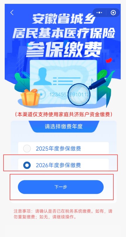 上年度已在本區(qū)參保的居民,無需辦理參保登記手續(xù),按規(guī)定直接通過線上線下渠道繳費。首次在本區(qū)參保的居民需先辦理“城鄉(xiāng)居民參保登記”后才能繳費。
