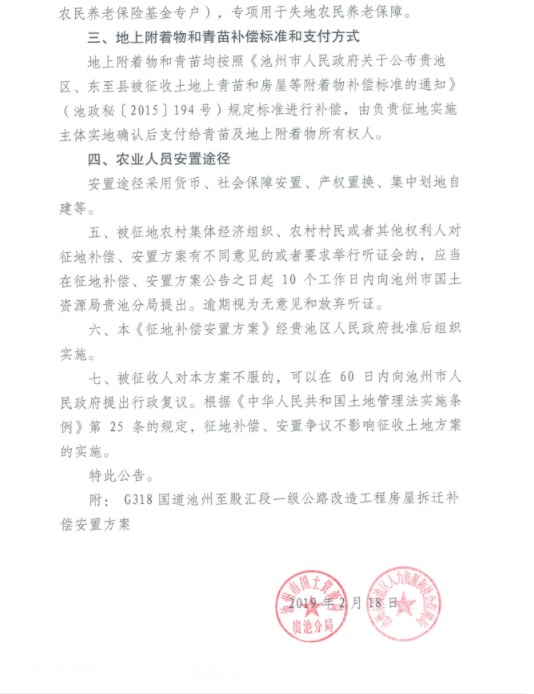 征地補償安置方案公告(318國道池州至殷匯段一級公路改建工程 )(里山街道)