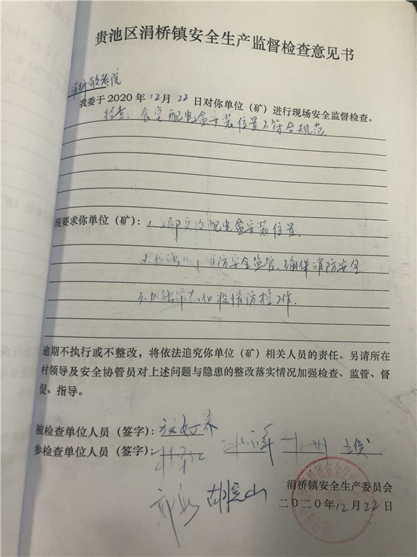 涓橋鎮(zhèn)敬老院安全生產監(jiān)督檢查意見書