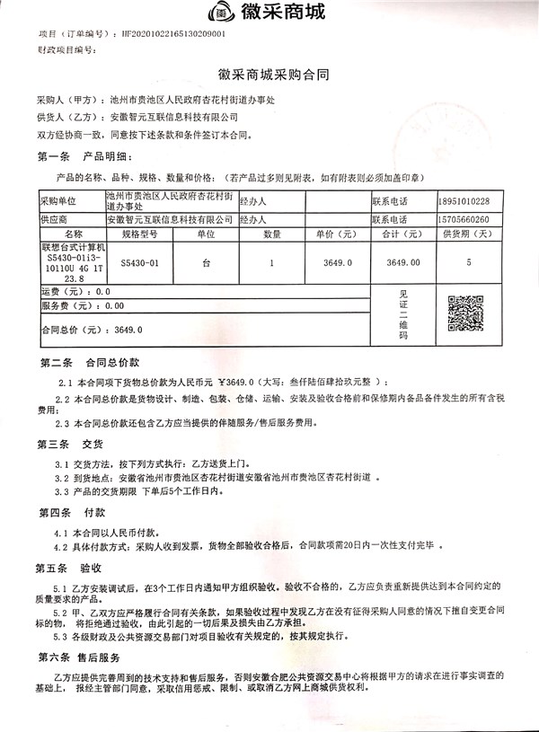 名稱: 杏花村街道分散采購訂立合同 文號: