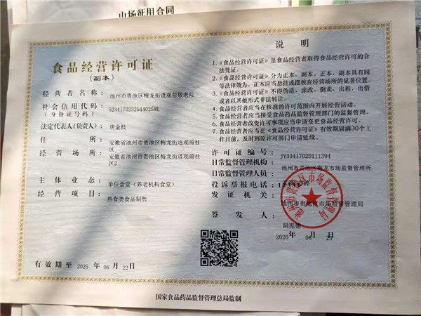 名稱: 【食品經(jīng)營許可】梅龍街道觀前養(yǎng)老服務(wù)中心食品經(jīng)營許可 文號: