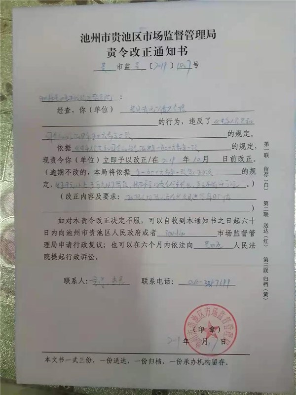 【檢查問(wèn)題】責(zé)令改正通知書(shū)