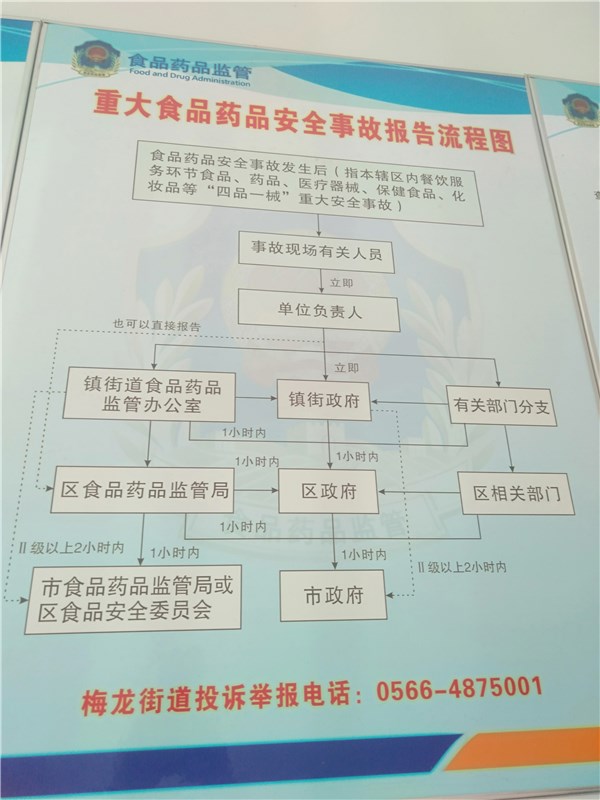 名稱: 梅龍街道食品藥品重大安全事故報告流程圖 文號: