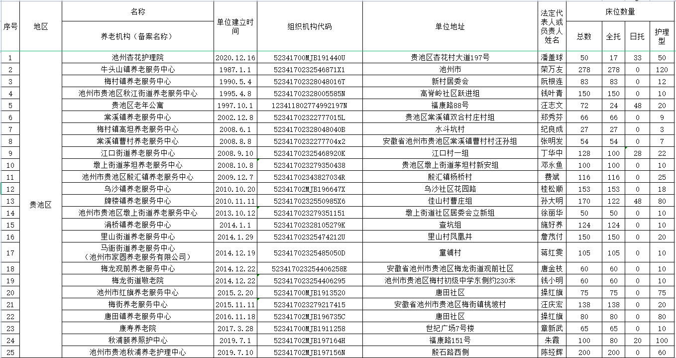 名稱: 池州市貴池區(qū)養(yǎng)老機(jī)構(gòu)備案登記表 文號(hào):