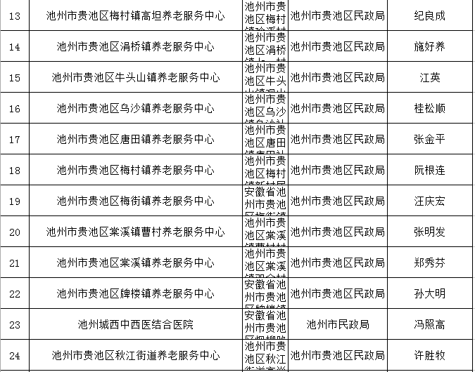 名稱: 池州市貴池區(qū)養(yǎng)老機(jī)構(gòu)備案登記表 文號(hào): 無(wú)