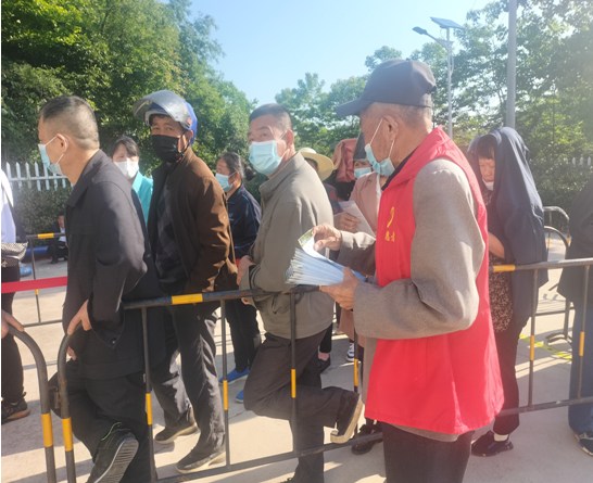 在核酸現(xiàn)場維持秩序志愿者的帶動(dòng)下,村民也積極配合,重視。