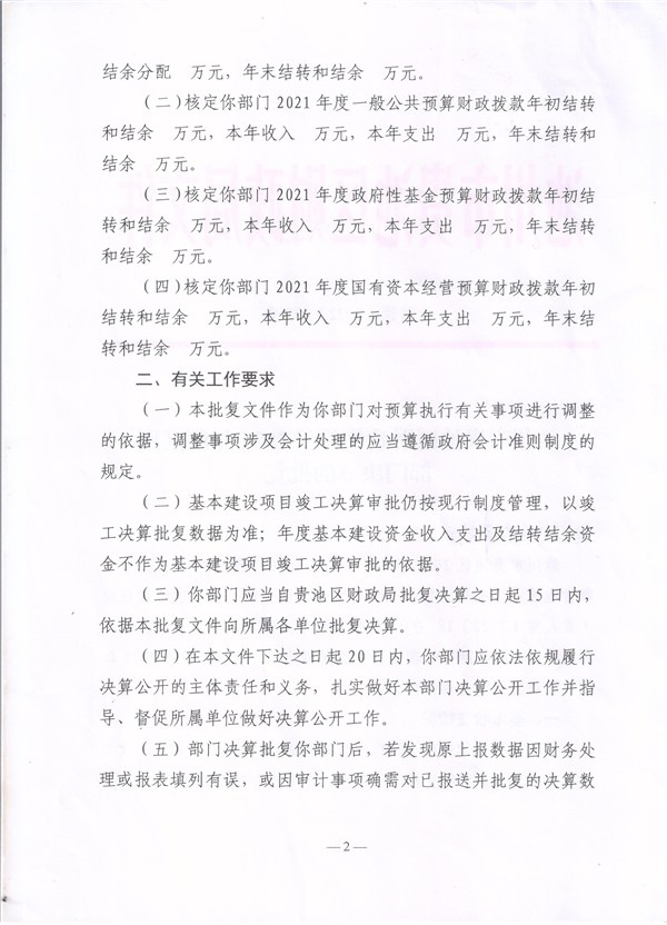 池州市貴池區(qū)財(cái)政局關(guān)于2021年度區(qū)級(jí)部門(mén)決算的批復(fù)