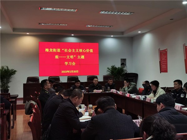 為深入培育和踐行“社會主義核心價(jià)值觀”,推進(jìn)創(chuàng)建全國文明城市,2月20日,梅龍街道組織班子成員、各黨組織,集中學(xué)習(xí)了“社會主義核心價(jià)值觀——文明”。
