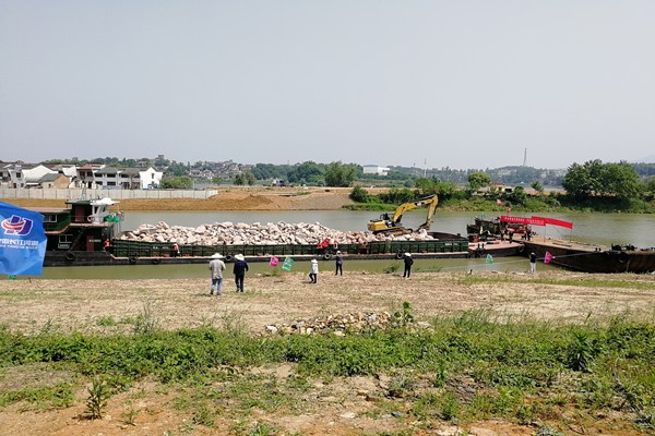 為消除池州市青通河航道整治工程切灘段岸坡滑動險情,確保大同圩堤防安全度汛,由貴池區(qū)水利局負責實施的應急除險工程于5月16日正式開工,目前已完成80%拋石任務,計劃5月21日完工。該工程對應于大同圩堤防樁號20+600~20+680段,長80米,包括水下拋石護腳和水上散拋石護坡兩部分,水下拋石護腳自7.00m(1985國家高程基準,下同)高程向外平順拋石,拋石寬度35m;水上散拋石自7.00m高程護至10.00m高程,總拋石量3000立方米。