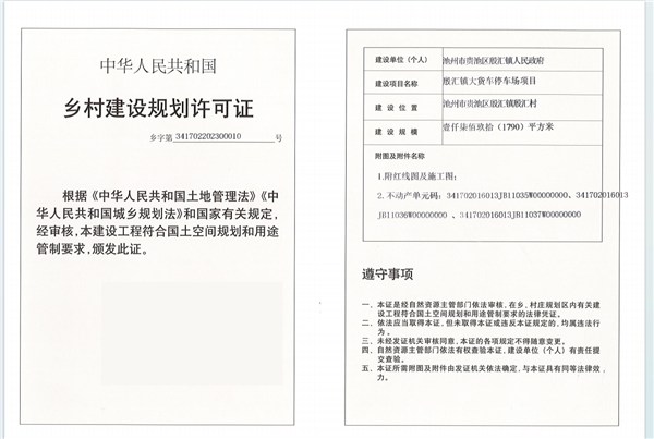 | 名稱(chēng): | 鄉(xiāng)村建設(shè)規(guī)劃許可證(殷匯鎮(zhèn)大貨車(chē)停車(chē)場(chǎng)項(xiàng)目) | 文號(hào): | 無(wú) |