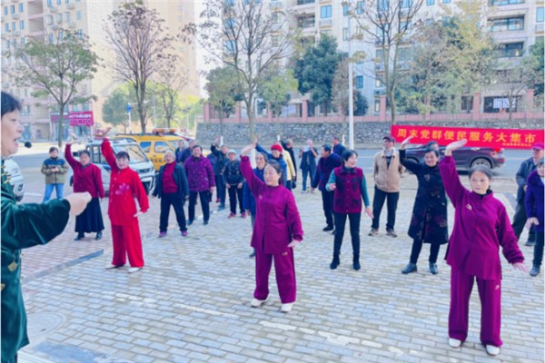 活動(dòng)室外,最受大家歡迎的強(qiáng)身健體操,在健身教練一招一式的教領(lǐng)下,學(xué)員們跟著節(jié)奏將身心融為一體,一邊鍛煉一邊享受健身帶來的快樂。