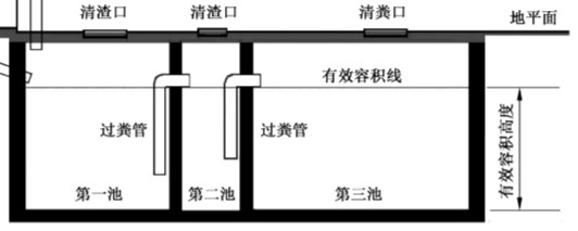 3.什么是三格式化糞池廁所? 三格式化糞池廁所由廁屋、蹲(坐)便器、沖水設(shè)備、三格化糞池等部分組成,核心部分是用于存儲(chǔ)處理糞污的三格化糞池。三格化糞池是一種糞污初級(jí)處理設(shè)備,由三個(gè)相互連通的池體組成,三池體積比例約為2:1:3,各池之間通過過糞管相連。