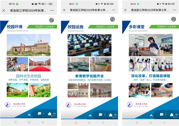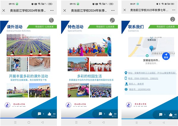 學校簡介> >貴池前江學校系2009年創(chuàng)辦的一所集幼兒園、小學、初中、高中為一體的民辦寄宿制學校,校園占地面積110畝,建筑面積66000平方米。按照高標準建設,分教學區(qū)、生活區(qū)、運動區(qū), 校園布局整齊美觀、氣勢恢宏、環(huán)境幽雅。學校位于安徽貴池前江綜合服務區(qū)的核心區(qū)域,緊鄰321省道和318國道,有多路公交直達,交通極其便利。辦學以來,成績斐然,高效“6+1”課堂模式,充分調(diào)動、培養(yǎng)了學生學習的積極性、自主性和思維的獨立性、創(chuàng)新性。 辦學特色> >奉獻、精細、規(guī)范、效率、落實、團隊;人文化、精細化、品牌化、多元化;誠信勤奮、自理和諧;建和諧校園、辦滿意教育;為了每一名學生的發(fā)展;面向未來,樂善教學;高效“6+1課堂;學校教學樓、綜合樓、餐廳、師生公寓、監(jiān)控中心、體育館、塑膠跑道等現(xiàn)代化教學設施一應俱全。選擇前江 成就未來。校園環(huán)境> >園林式生態(tài)校園。綠草如茵、空氣清新、環(huán)境優(yōu)美、設施完善。 校園設施> >教育教學設施齊全。設有多種特色教室、現(xiàn)代化教學設施一應俱全。 多彩課堂> >深化改革,打造精品課堂。滿懷“雙減”初心,開設多樣課堂。 課外活動> >開展豐富多彩的課外活動。促進學生全面發(fā)展,充分發(fā)揮學生個性。 特色活動> >多彩的校園生活。多渠道全方位的為學生創(chuàng)造豐富的校園文化生活。 聯(lián)系我們> >地址:安徽貴池前江工業(yè)園區(qū)(牛頭山鎮(zhèn)寶賽花園) 電話:0566-3385668 3388100 聯(lián)系人:施老師 聯(lián)系方式:18269901490(微信同號) 在線咨詢> >(填寫學生相關信息)