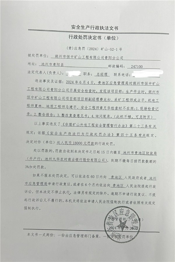 名稱: (貴)應急罰〔2024〕礦山-S2-1號 文號:
