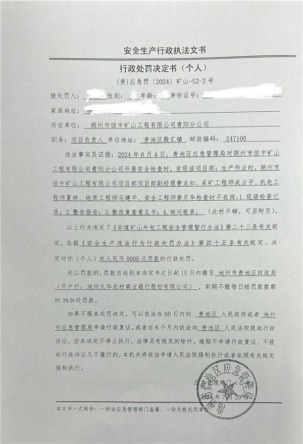(貴)應(yīng)急罰〔2024〕礦山-S2-2號