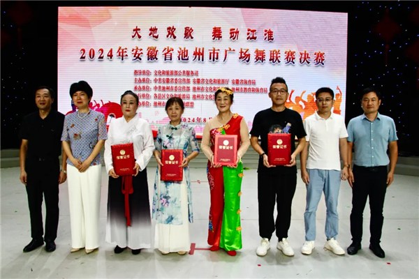 在8月9日下午結(jié)束的“大地歡歌 舞動(dòng)江淮”2024年安徽省池州市廣場(chǎng)舞聯(lián)賽決賽中,由貴池區(qū)文化和旅游局選送、貴池區(qū)文化館組織的廣場(chǎng)舞《春耕杏花村》,在各縣區(qū)九強(qiáng)隊(duì)伍中脫穎而出獲得一等獎(jiǎng),演出單位貴池區(qū)文化館再唱山歌藝術(shù)團(tuán)獲得“最佳活力獎(jiǎng)”,廣場(chǎng)舞《喜洋洋》(演出單位:貴池區(qū)文化館清溪河舞蹈隊(duì))獲得三等獎(jiǎng),貴池區(qū)文化和旅游局獲得“最佳組織獎(jiǎng)”。