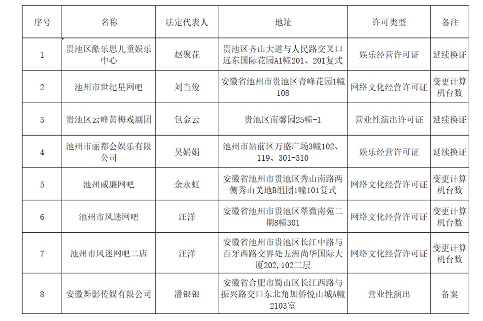 2025年3月10日-2025年3月14日貴池區(qū)文旅局行政審批事項(xiàng)公示