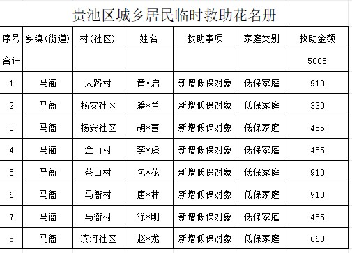 馬衙街道2025年1月臨時(shí)救助匯總表