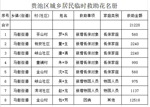 馬衙街道2025年4月臨時(shí)救助匯總表