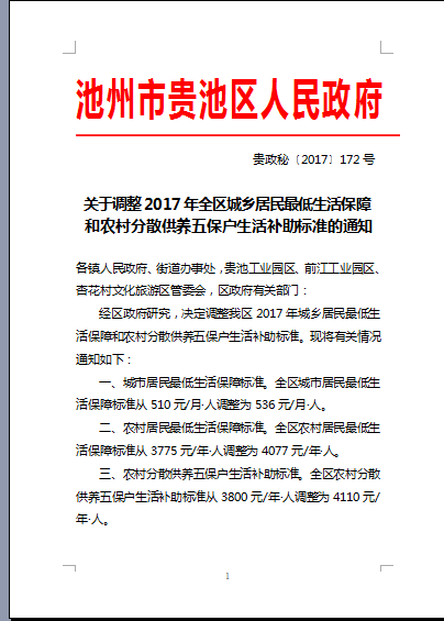 關(guān)于調(diào)整2017年全區(qū)城鄉(xiāng)居民最低生活保障和農(nóng)村分散五保戶補助標(biāo)準(zhǔn)的通知
