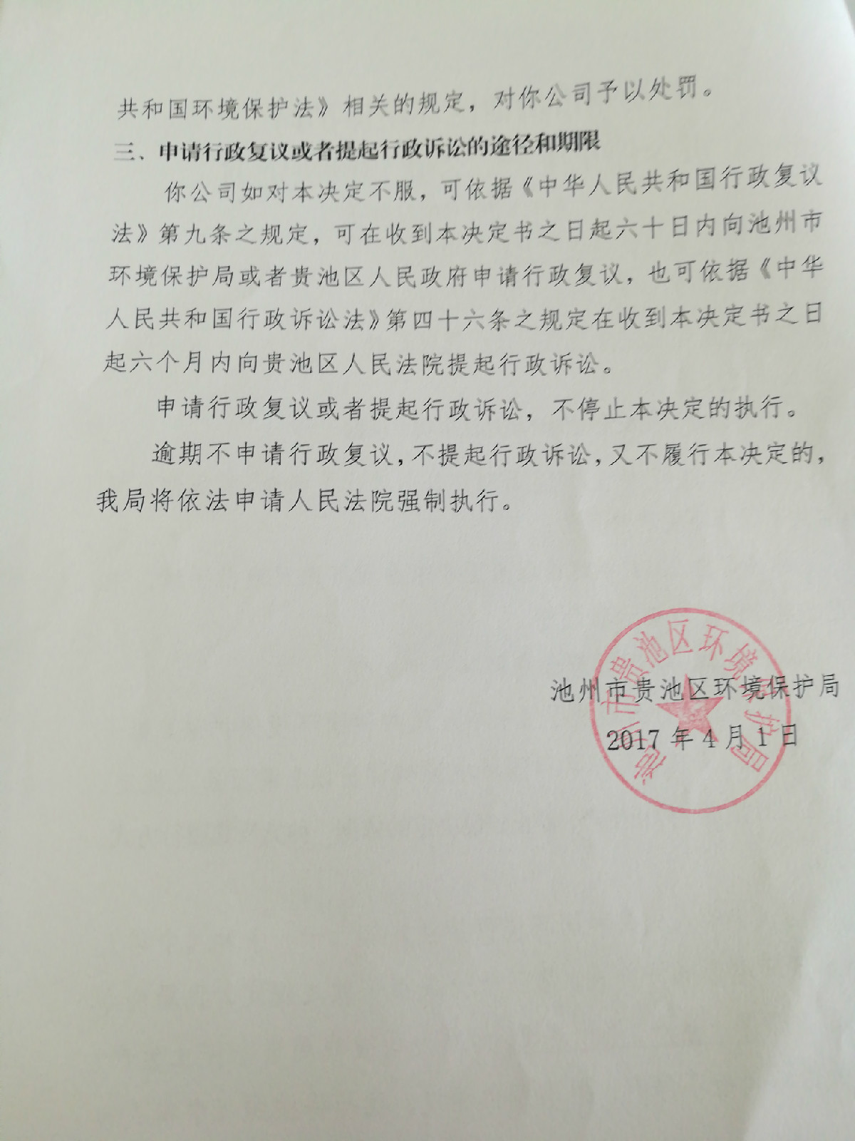 池州市貴池區(qū)環(huán)境保護局關于池州市金倡建筑材料有限公司責令停止生產(chǎn)、停止建設決定書