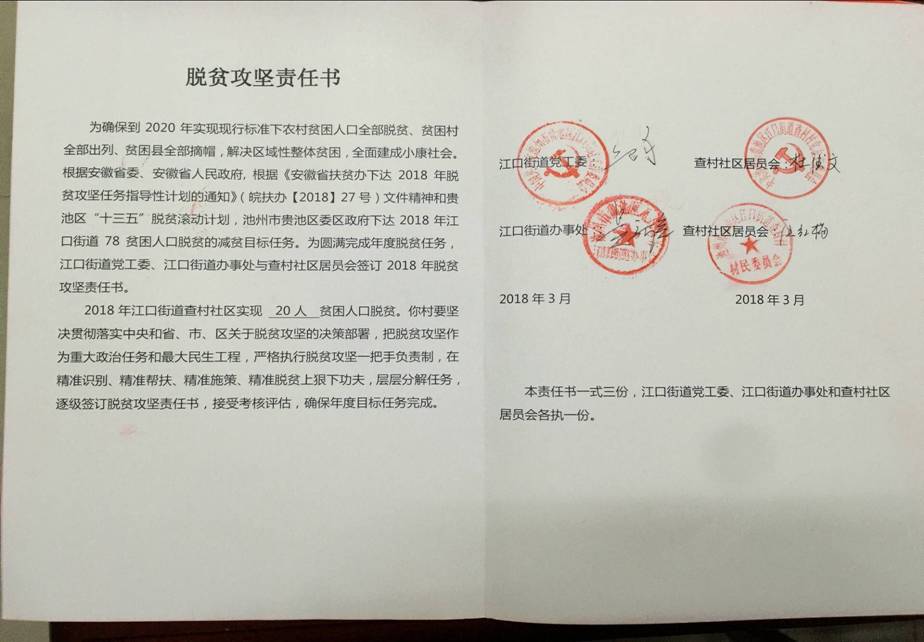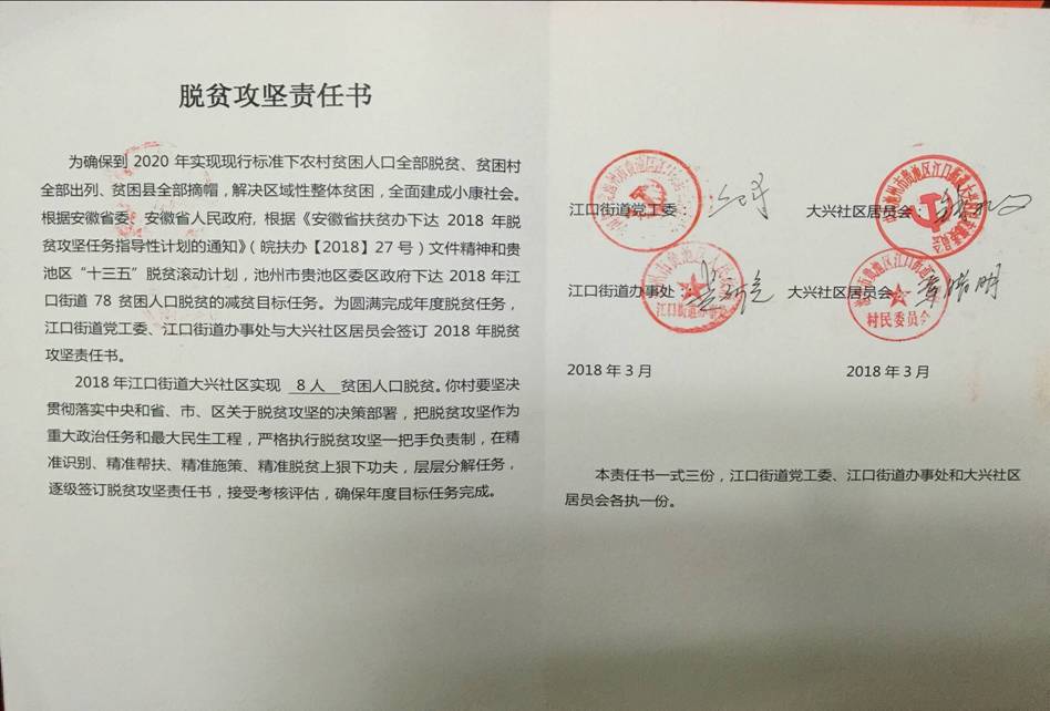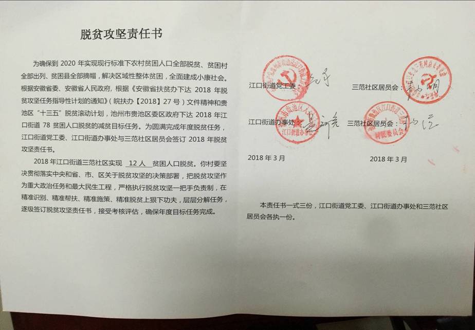 2018年街道與各社區(qū)的脫貧攻堅目標(biāo)責(zé)任書