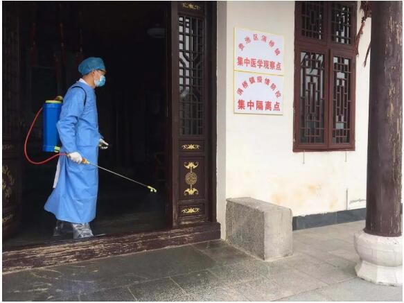 醫(yī)務(wù)人員對集中隔離點進行消殺