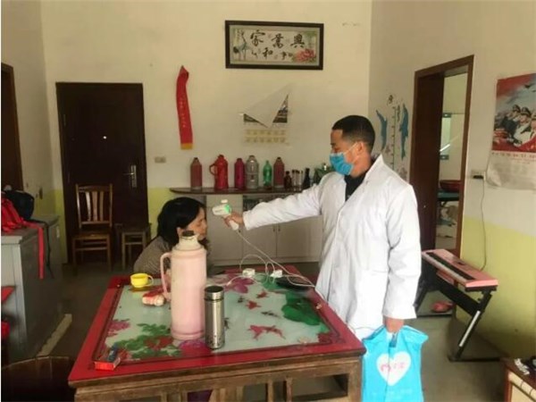 村醫(yī)為返鄉(xiāng)人員測(cè)溫