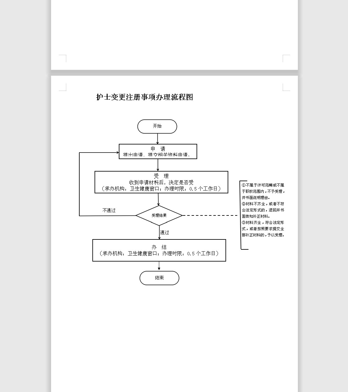 名稱: 護(hù)士變更注冊事項(xiàng)辦理流程圖 文號: