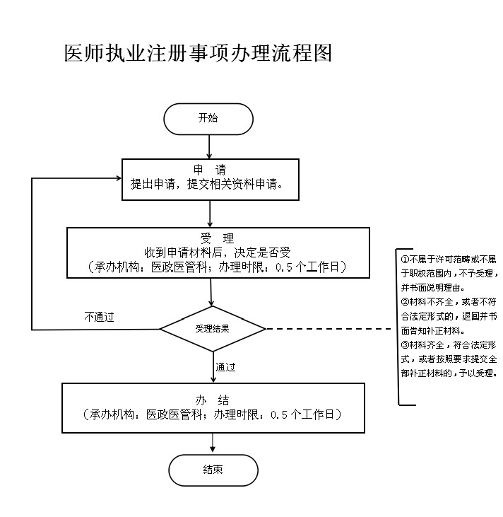 名稱: 醫(yī)師執(zhí)業(yè)注冊事項(xiàng)辦理流程圖 文號: