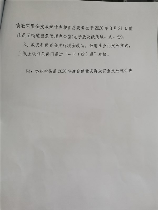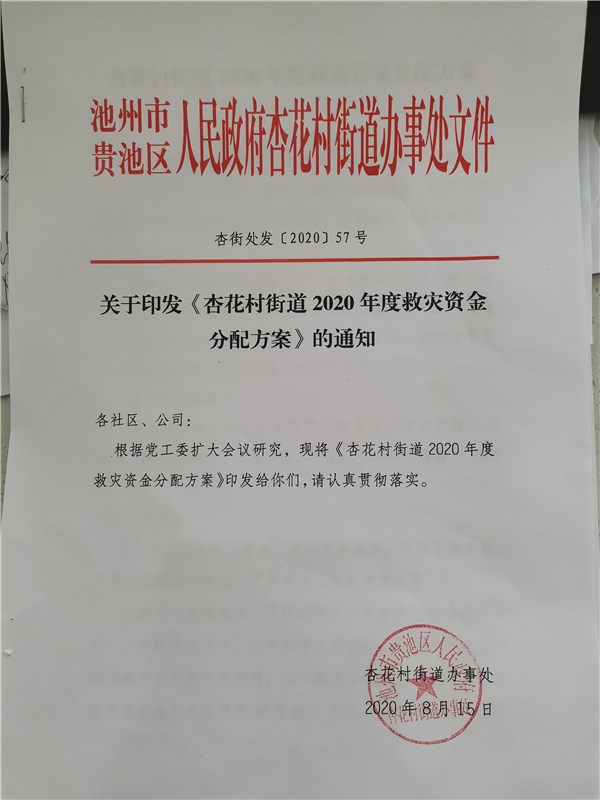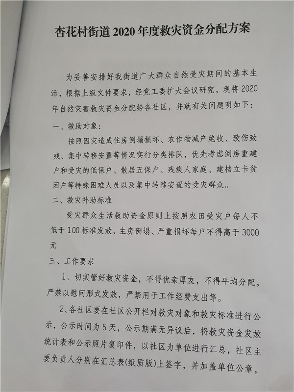關(guān)于印發(fā)《杏花村街道2020年度救災(zāi)資金分配方案》的通知