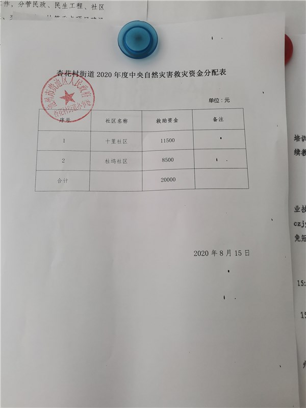 名稱: 關(guān)于印發(fā)《杏花村街道2020年度救災(zāi)資金分配方案》的通知 文號(hào):