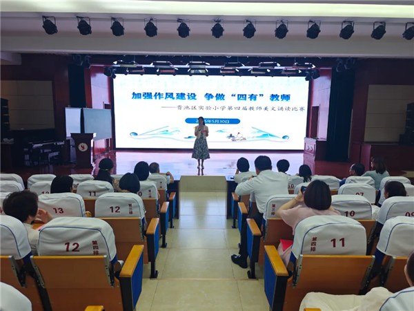 五月的暖陽浸潤書香,朗誦的清音激蕩心靈。5月30日下午,貴池區(qū)實驗小學(xué)以“弘揚教育家精神,爭做新時代大先生”為主題,隆重舉辦第四屆教師美文誦讀比賽?;顒佑蓚湔n組長王麗老師主持,十六組參賽教師登上舞臺,用聲音詮釋文字之美,用深情傳遞教育之魂,為全校老師奉獻了一場震撼心靈的文化盛宴。