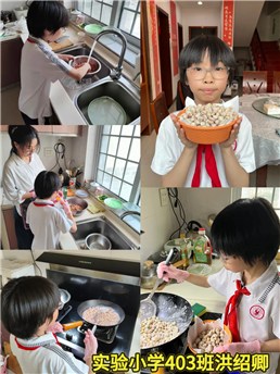 “親子廚藝展示”將活動(dòng)推向溫情高潮。孩子們帶著勞動(dòng)成果歸家,與家長(zhǎng)共同烹飪花生美食。從清香的花生米拌涼菜到經(jīng)典的宮保雞丁,再到香甜的花生酪,廚房中滋滋作響的烹飪聲,不僅是勞動(dòng)果實(shí)的美妙轉(zhuǎn)化,更是親子情感交融的生動(dòng)見(jiàn)證。一張張溫馨的烹飪照片記錄著勞動(dòng)教育從校園向家庭延伸的溫暖軌跡,實(shí)現(xiàn)了知識(shí)傳遞與情感培育的雙重升華。