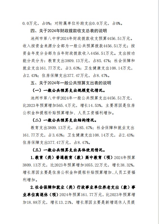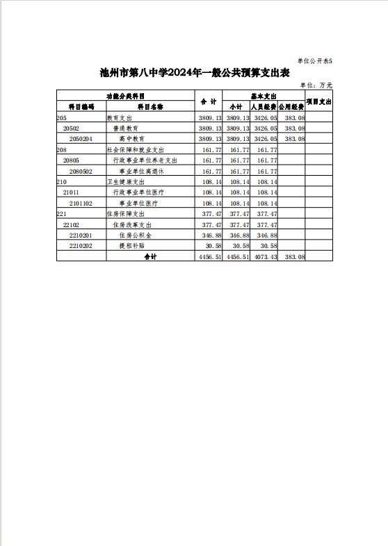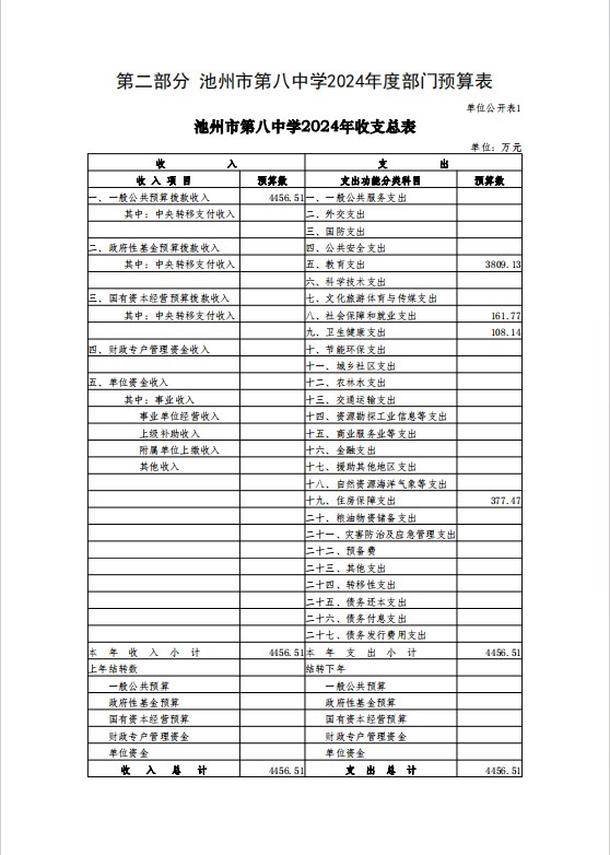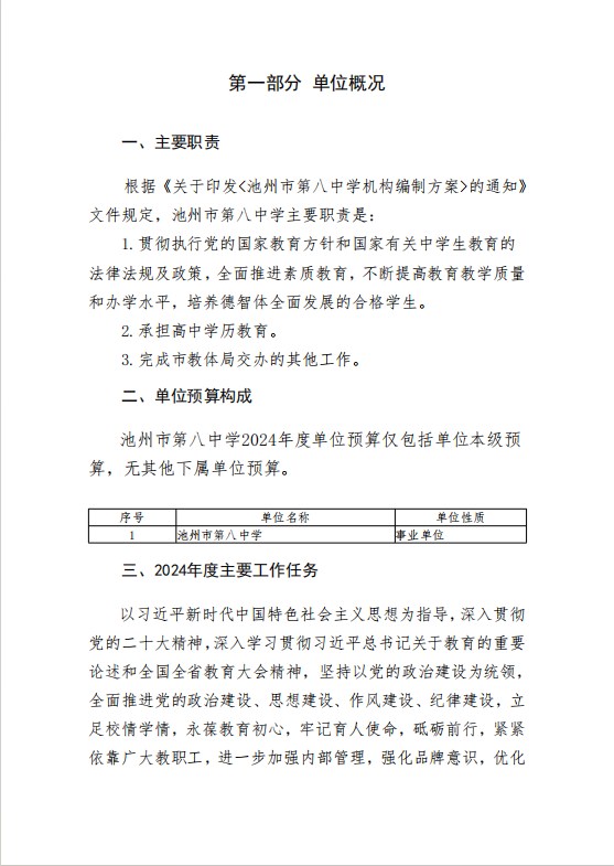 池州市第八中學(xué)2024年度單位預(yù)算公開