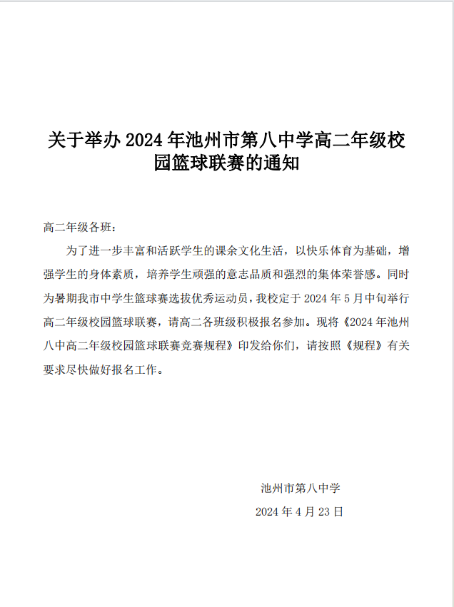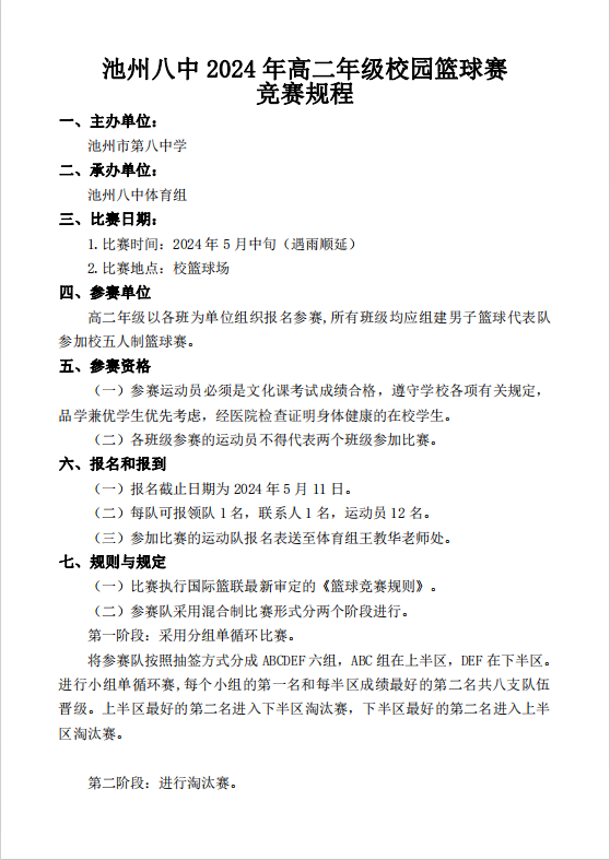 池州市第八中學2024年校園籃球聯(lián)賽秩序冊
