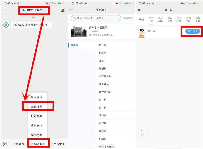 方式:關(guān)注“池州市中醫(yī)醫(yī)院”微信公眾號(hào),24小時(shí)在手機(jī)上預(yù)約掛號(hào)。